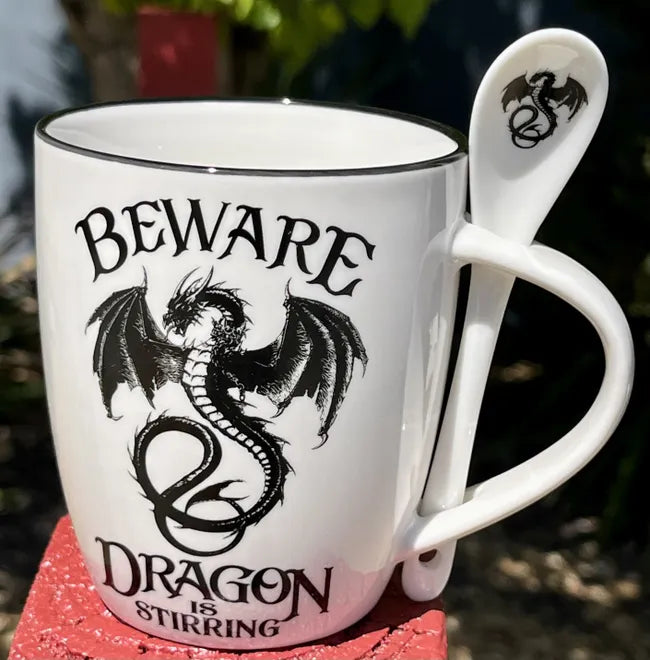 Beware Dragon is stirring has a dragon on the cup and spoon.