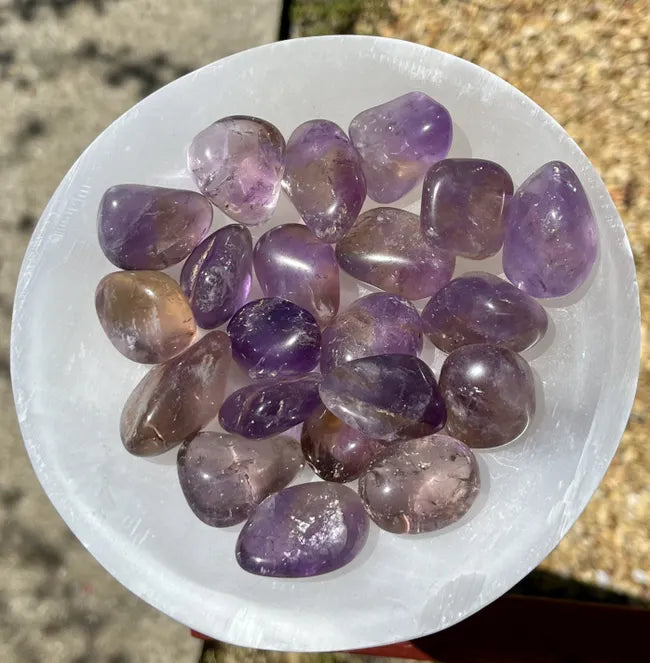 Ametrine tumbled or polished stones. They measure approximately 1". Your stone will be similar to the stones in the picture and it will be intuitively picked for you. If you have a specific request or attribute message or comment.