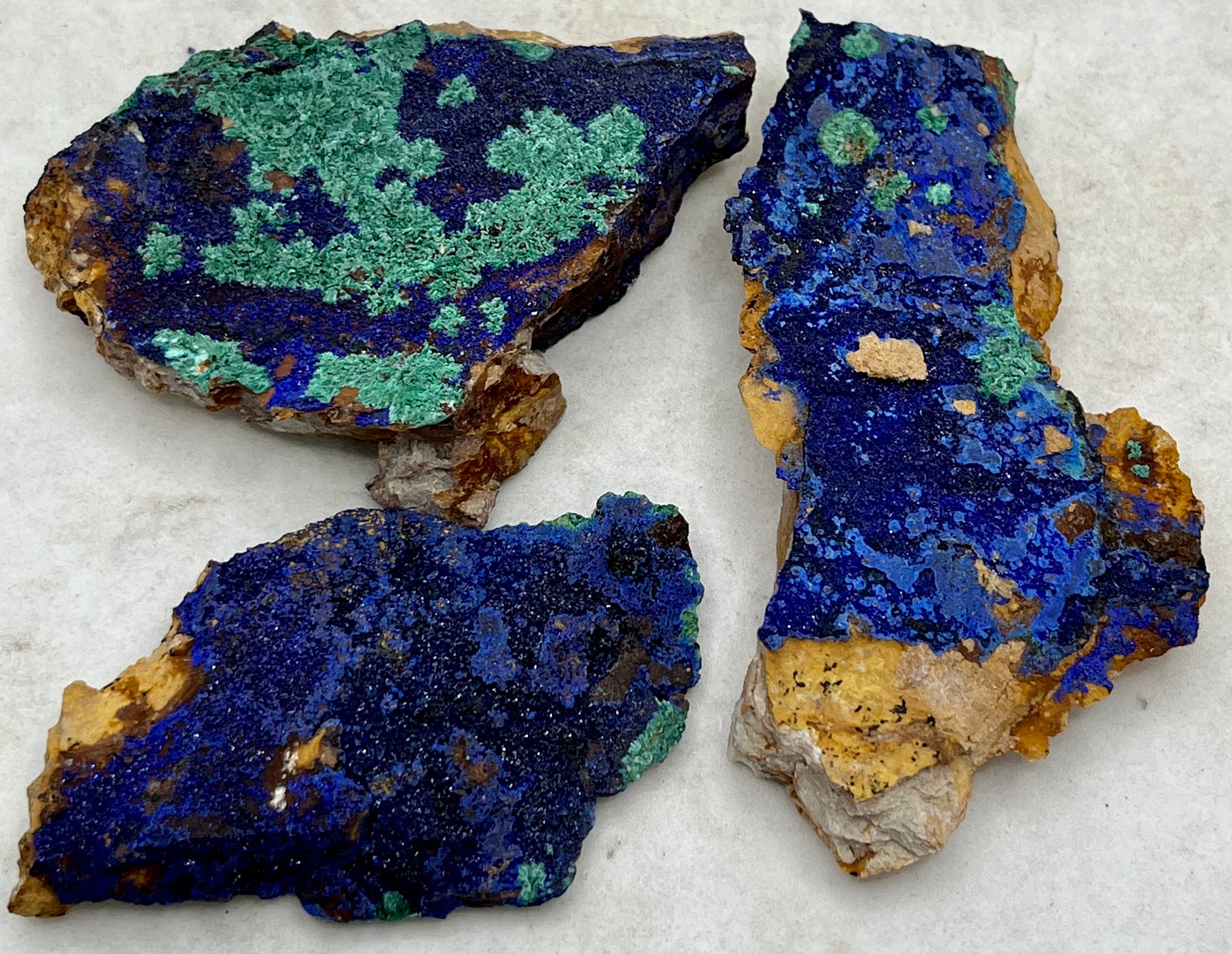 Azurite and Malachite specimens. They measure approximately 2 1/2 to 3 inches.