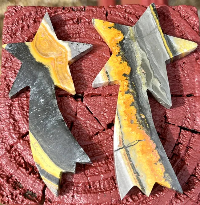 Bumblebee Jasper shooting star. They measure approximately 3". Your star will be intuitively chosen. If you have a special request or specific attributes please message or include in your comment and we will try to accommodate it.