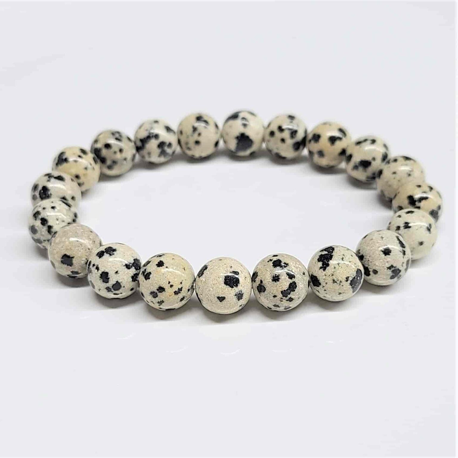 Add a touch of fun and earthy energy to your wrist with our Dalmatian Jasper 8mm Bead Stretch Bracelet. Crafted from natural Dalmatian Jasper beads featuring unique cream or beige tones with striking black speckles, each bracelet is one-of-a-kind. Strung on a durable, flexible stretch cord, it’s perfect for everyday wear or stacking with your favorite crystal bracelets.