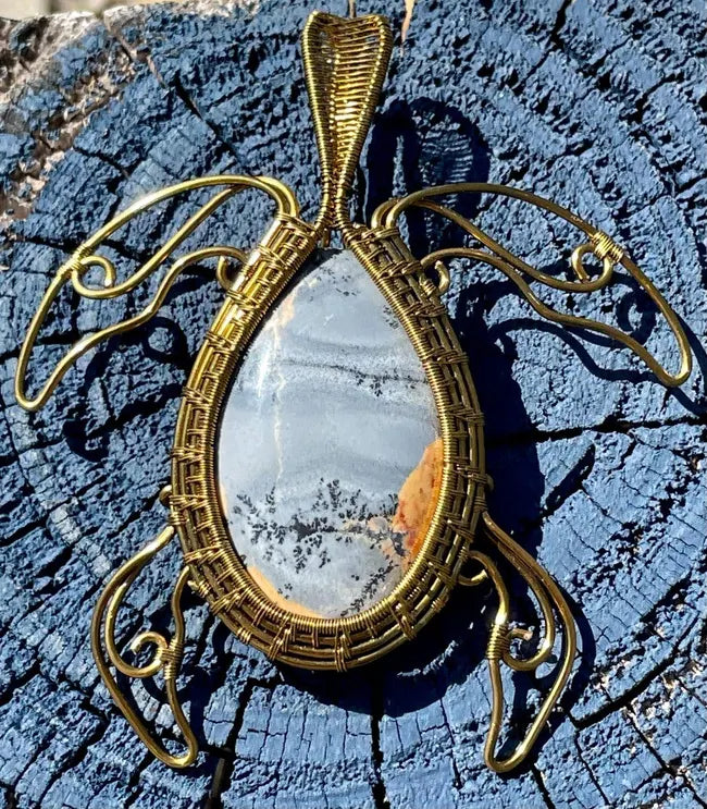 Dendritic Agate Wire Wrapped Turtle Pendent