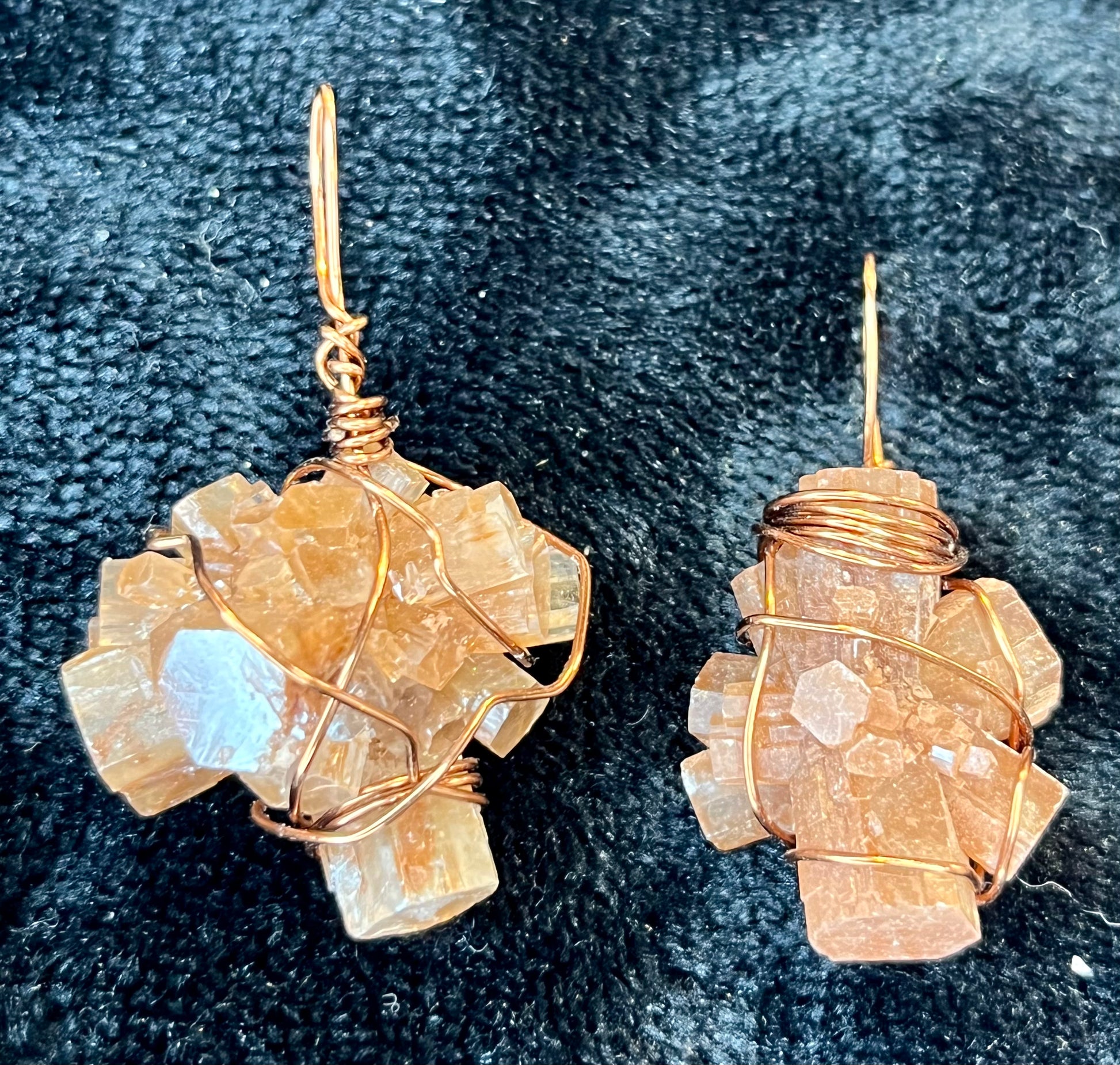 The Aragonite raw star clusters measure approximately 1 inch and are light red/brownish in color. They are wrapped with copper wire. These clusters are perfect to display as a specimen piece or as wire wrapped jewelry.