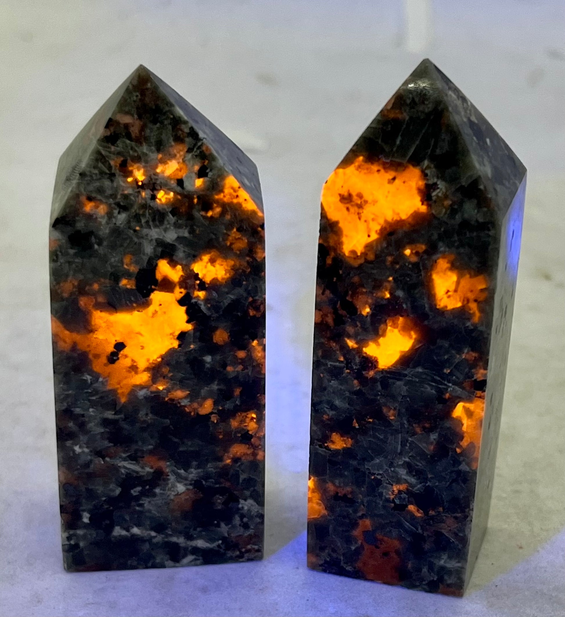 Yooperlite Tower measures approximately 3 inches tall. They are UV reactive.