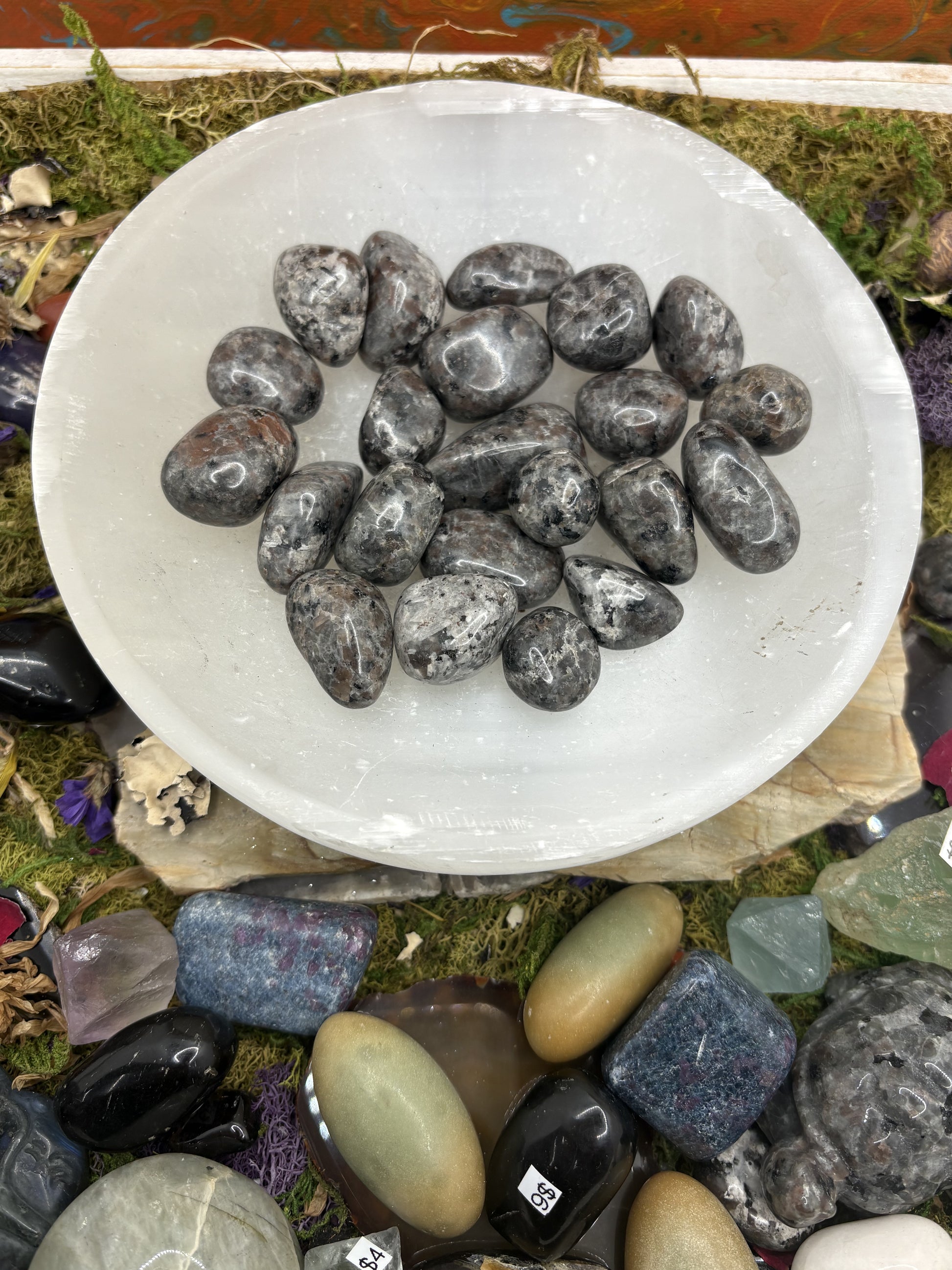 Yooperlite tumbled stones that measure 1/2 to 1 inch. Your stone will be similar to the ones in the picture. They are all very UV Reactive.